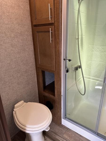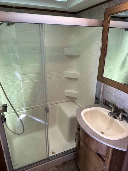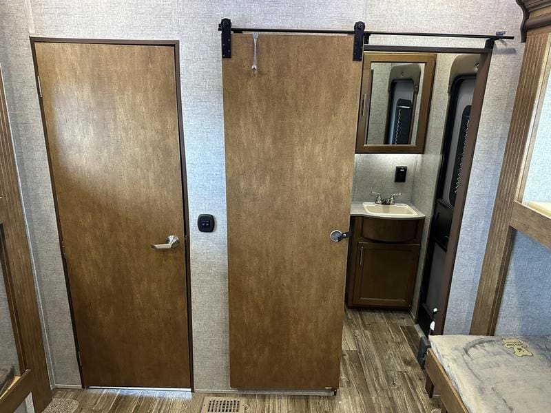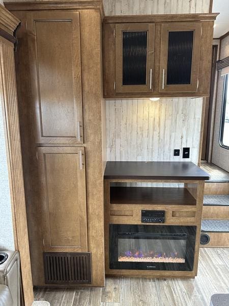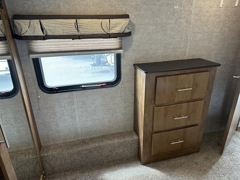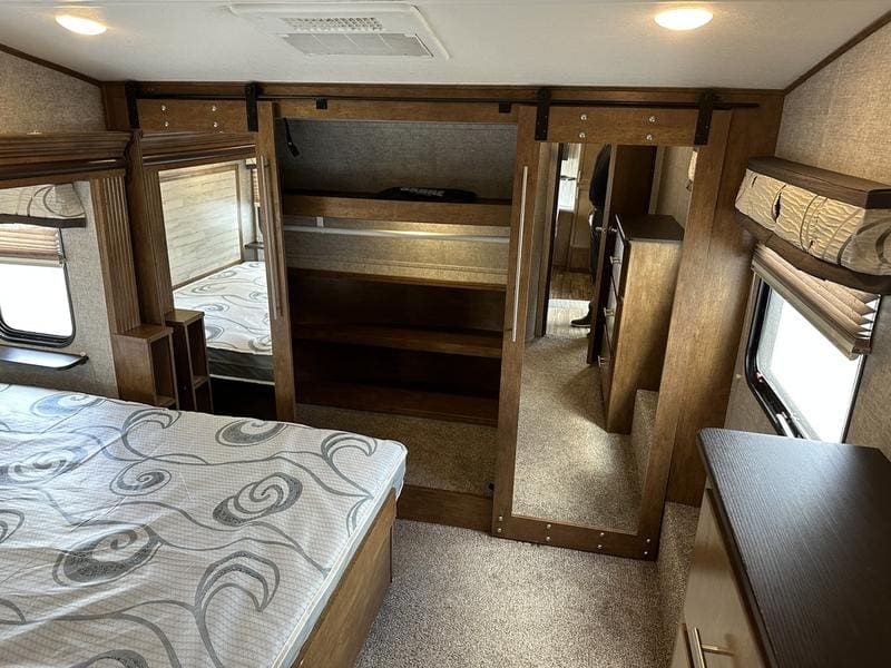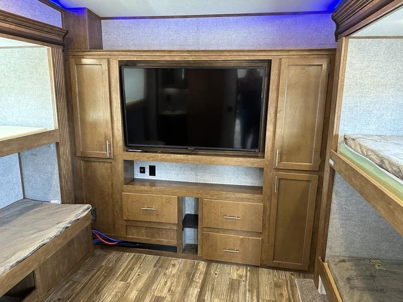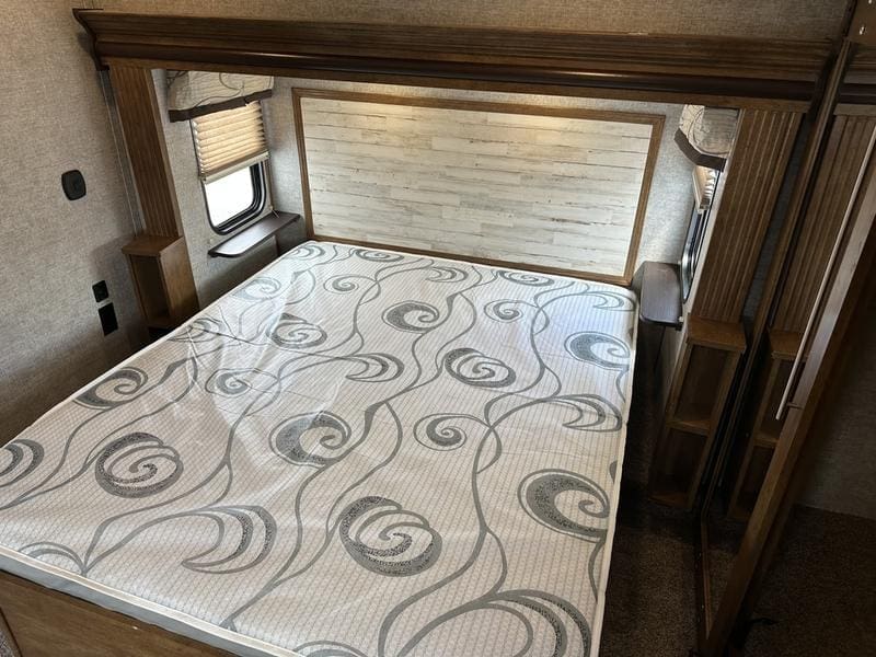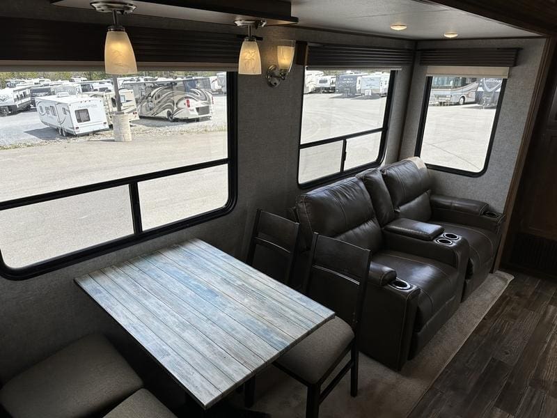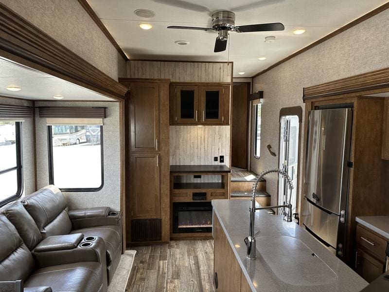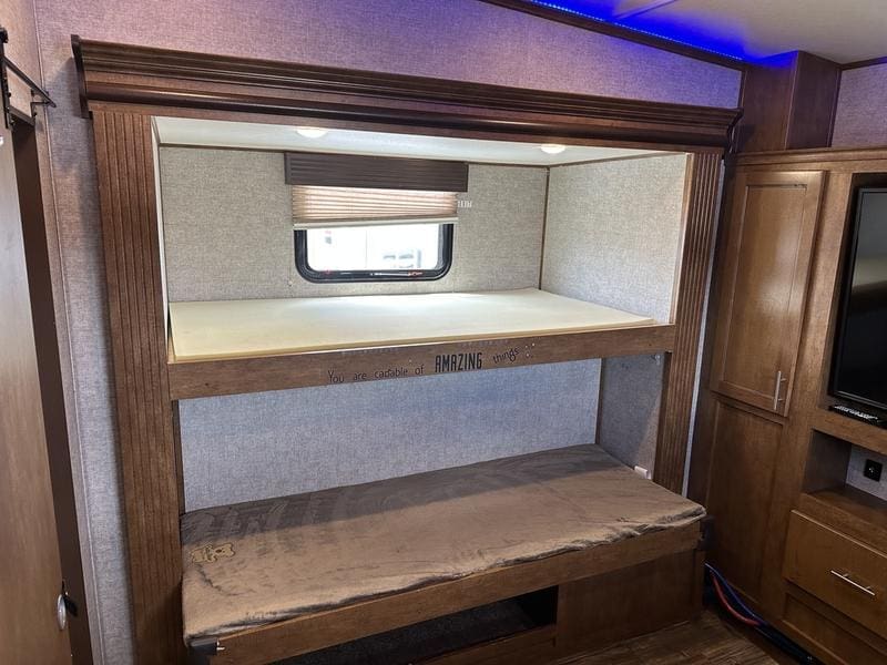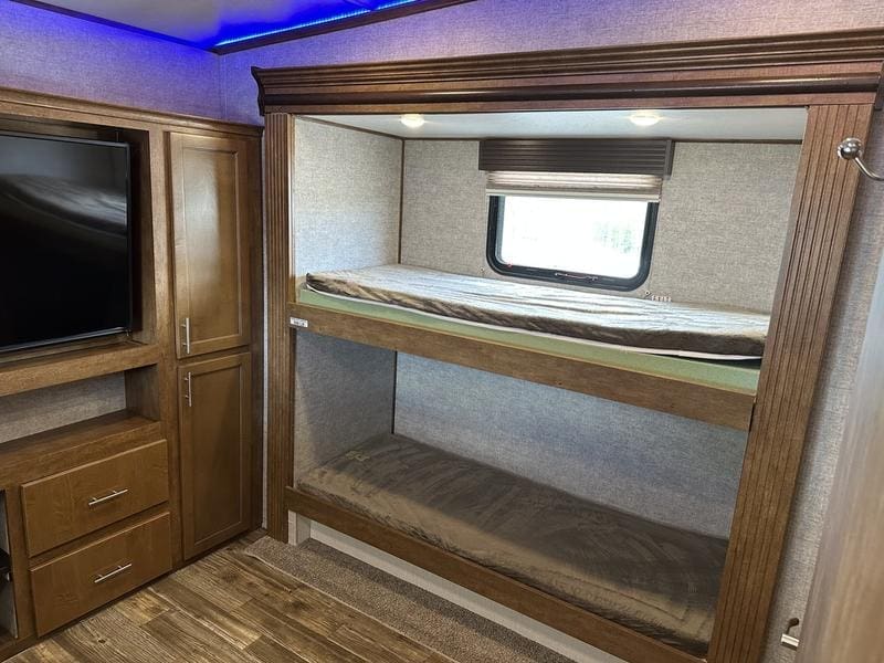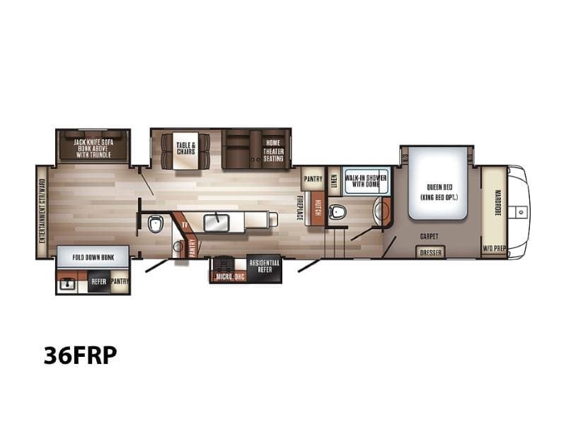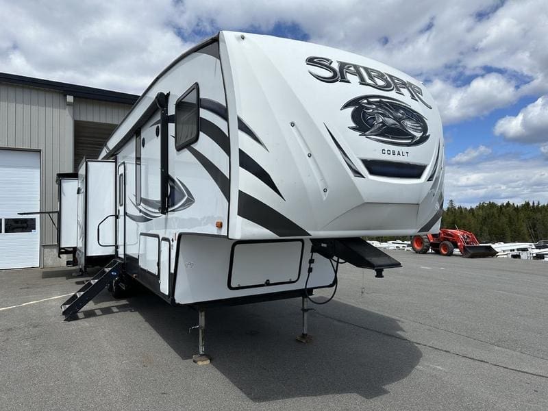2018 Forest River Sabre 36FRPSABRE FIFTH WHEELS … BUILT FOR THE OPEN ROADEvery Sabre fifth wheel we build combines luxury, style and affordability without ever sacrificing quality. Built on America’s most popular floor plans, along with the longest list of standard features, we are committed to providing the best fifth wheel value in the industry today. Luxurious living areas, residential kitchen appointments and all the comforts of home make Sabre the clear choice when it’s time to head for the great outdoors.Features may include:Cobalt PackageCinemax Seating with cup holders, heat, massage and backlightingFireplace with remoteDouble high output USB Charging Ports (nightstands, bunks, kitchen, andboothdinetteLarge residential size LED TV44″ booth dinetteDeluxe Soft Pull roller shades (main living slide)40″ ceiling fanKleer-View backlit medicine cabinetVersa-Bed adjustable, powered sleep systemTrue-Sheen high gloss exteriorGeneration III electric Auto Leveling systemEZ-Stow rear accessory storage rack and spare tireBack up camera prepTire Pressure Monitoring systemDetachable marine style 50AMP power cordPrep for 2nd ducted air conditioner1000W power inverterSolar PrepAll Inclusive PackageHeated and enclosed underbellyHigh gloss gelcoat front cap with LED lightingAluminum rimsAdjustable power awning with LED lightingBattery disconnectEZ access slide room overrideFriction Hinge entry door mechanismEXTERIOR TV HOOKUP with cable/SAT/110V/LED speakersLarge folding entry assist handleUniversal Docking Center (includes black tank flush and outside shower)10 gallon G/E DSI water heater (bed slides only)Large panoramic slide windowsInterior/exterior LED lighting throughoutAM/FM/CD/DVD multi-media system with BluetoothPorcelain stool with water jet assistGlass shower enclosureBath skylightWasher/dryer prep (bed slides only)Night shadesBistro KitchenColossal Camper 4-drawer, french door, house type refrigeratorSeamless Countertops throughoutAll stainless steel appliancesEnormous under mount single bowl kitchen sinkEnhanced Kitchen Lighting (under cab, range hood and overhead)High rise deluxe pull down kitchen faucet with spring spoutSignature cabinetry styling and hardwareLarge sink coverOversize pots and pans drawers at dinette