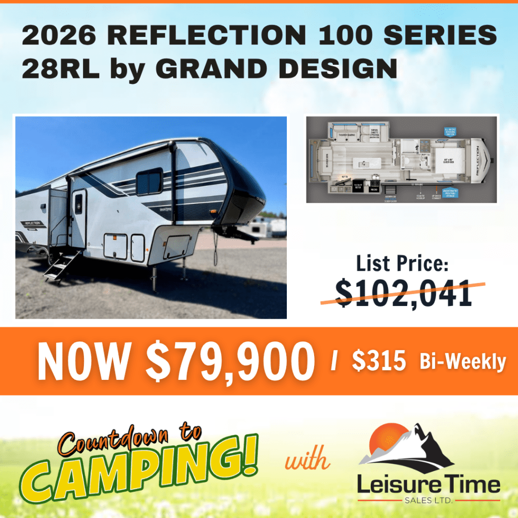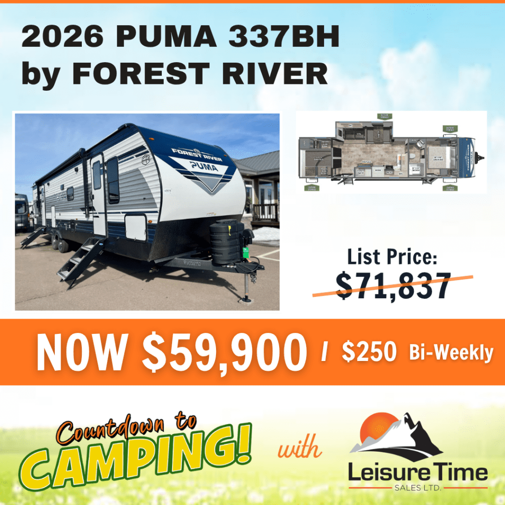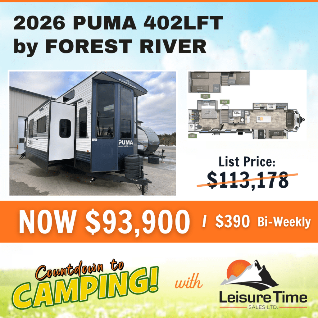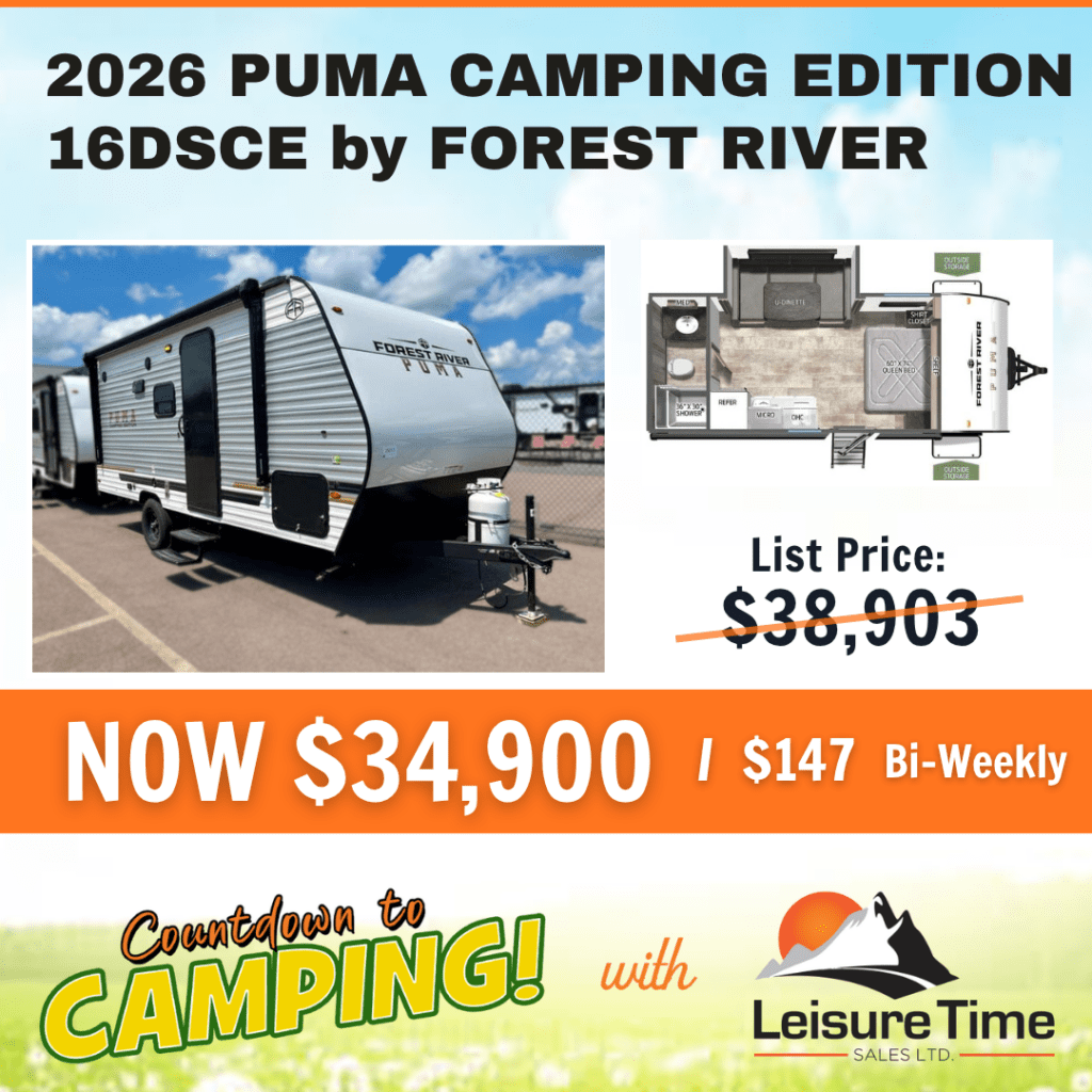Leisure Time Sales’ Countdown to Camping Sales Event is on now. Inventory is limited! Buy now while the deals are hot! See what’s new in Grand Design and Puma travel trailers. Take advantage of pre-season pricing, easy financing solutions, and a no payments for 90 days option! Factory trained representatives are waiting to serve you.